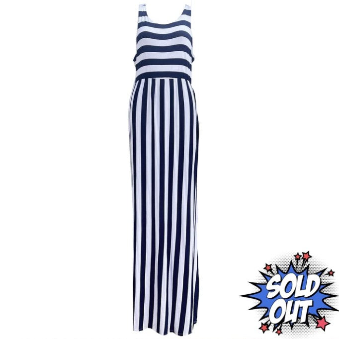 Bellamie Dark Blue and White Striped Sleeveless Maxi Dress - XL