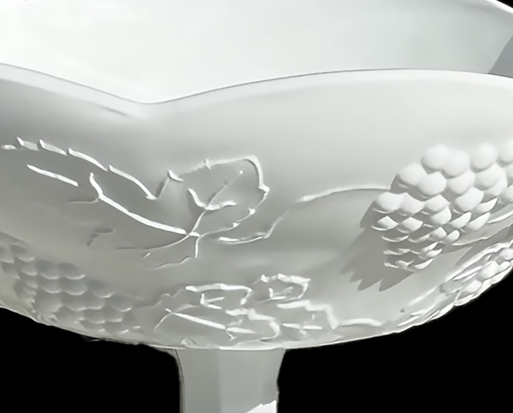 Colony Harvest Milk Glass Pedestal Serving Bowl 10-in. Grapes and Leaves