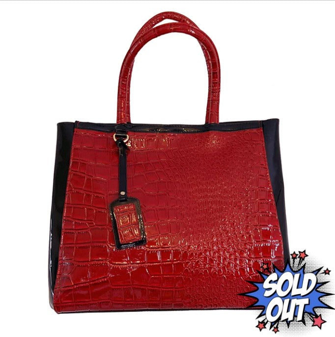 Elizabeth Arden Red and Black Patent Leather Crocodile Tote Bag