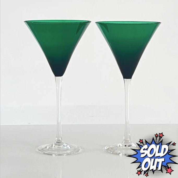 This beautiful pair of emerald green martini glasses from the Lenox Holiday Gems collection are perfect for an intimate dinner for two. The sleek design of the blown glass is further enhanced by the Lenox name etched on the base. This set makes a lovely engagement, wedding or anniversary gift. Buy it for yourself or someone you love!