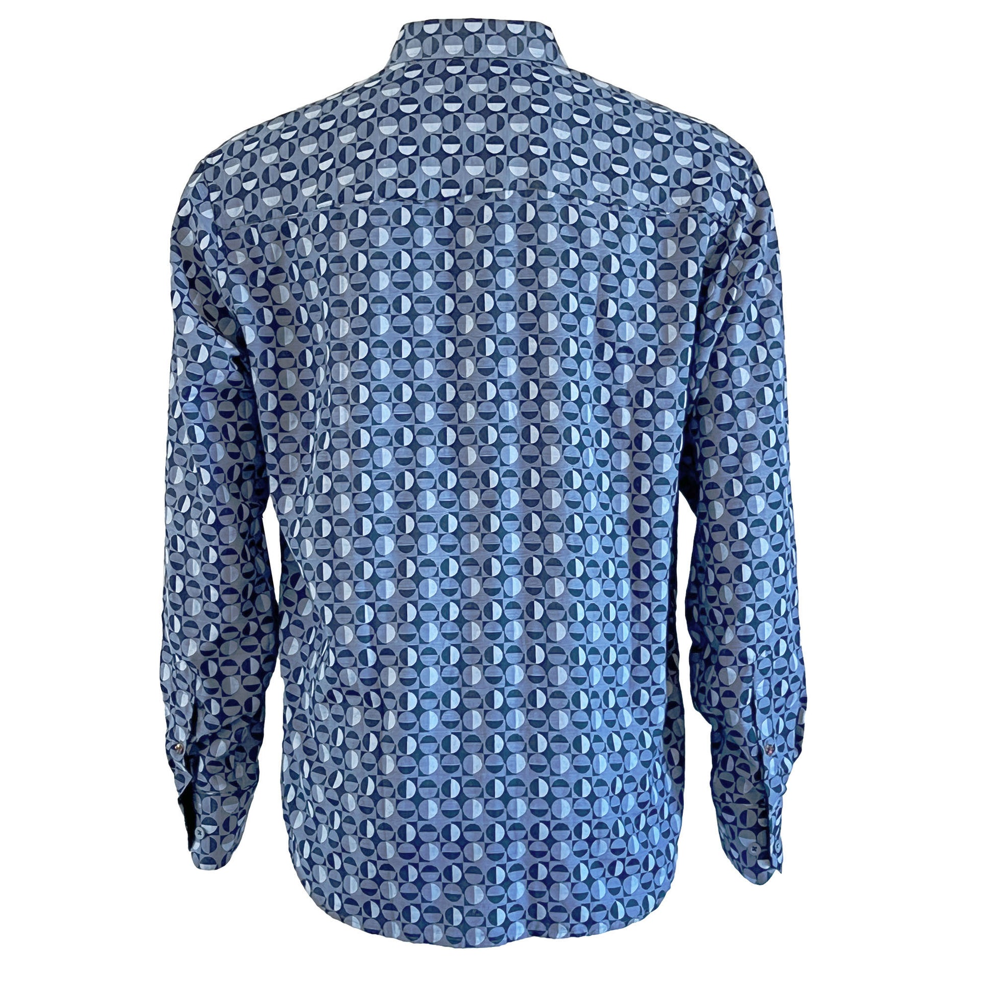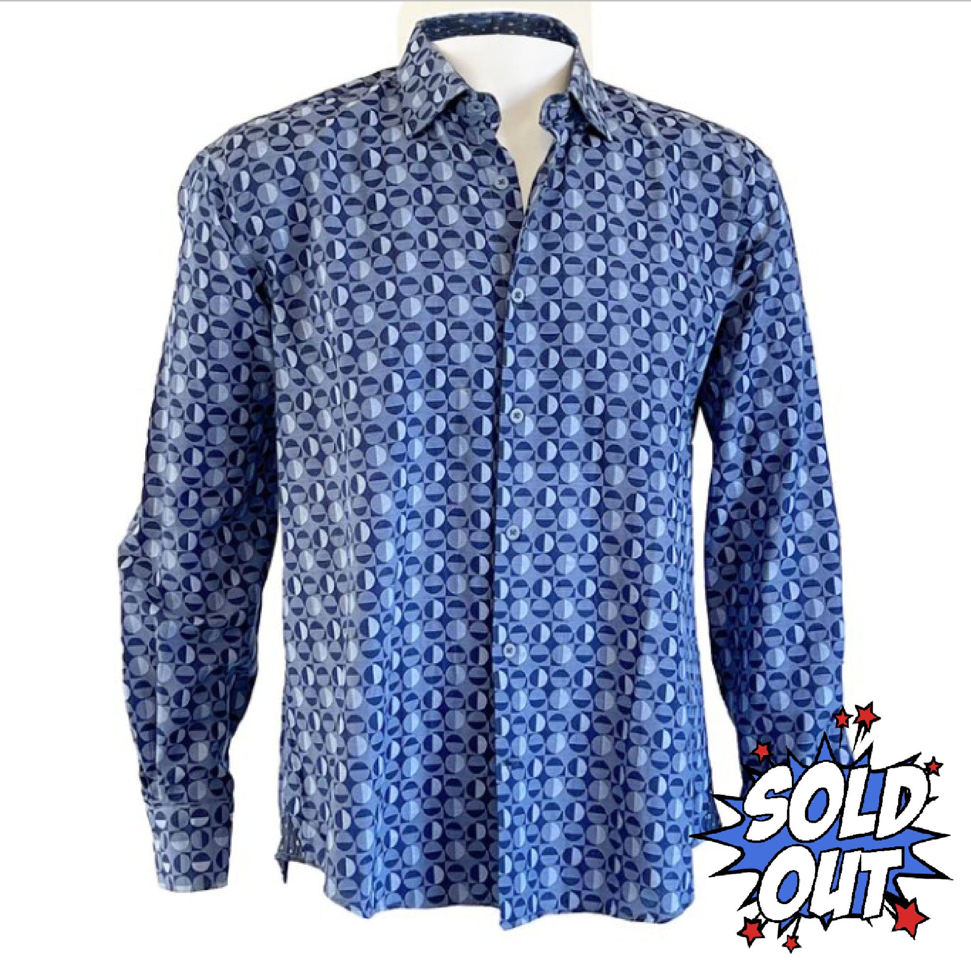 Men's Vintage Luchiano Visconti Blue Geometric Casual Sport Shirt - Large