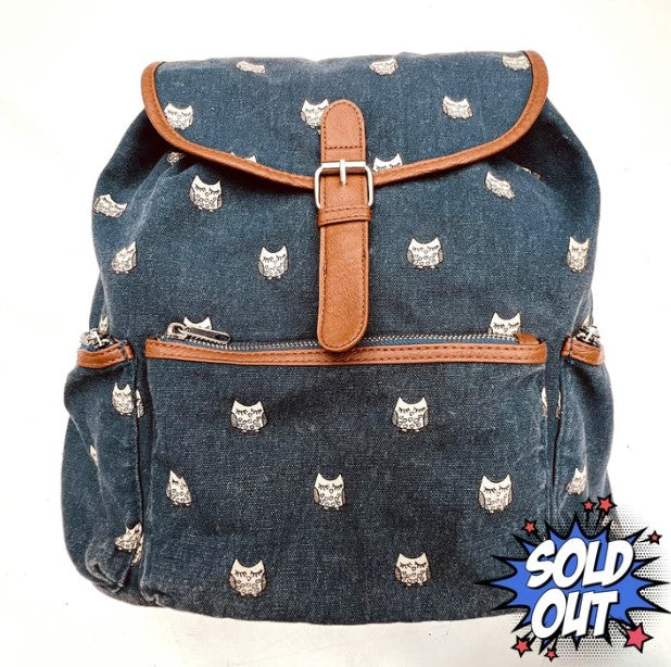 Mudd Blue Denim Owl Print Backpack, School Book Bag