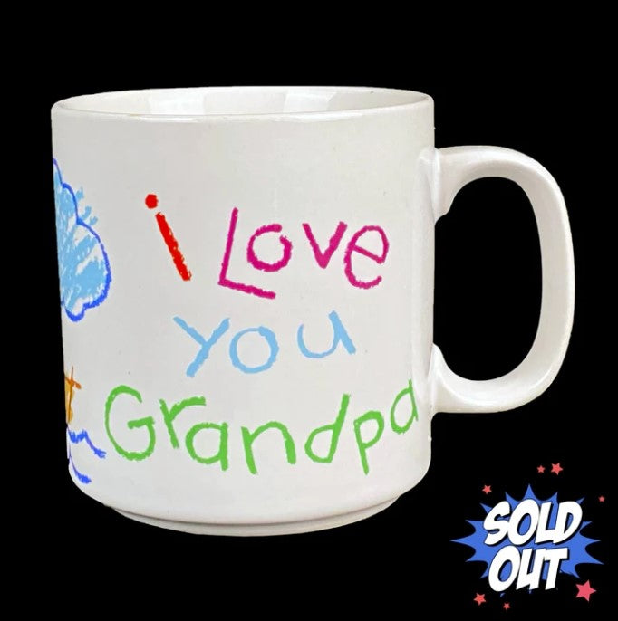 Adorable white ceramic coffee mug with children's hand written message, "I Love You, Grandpa." The mug measures 3.5" high x 4.5" wide, including the handle. Buy it for a grandfather you love!