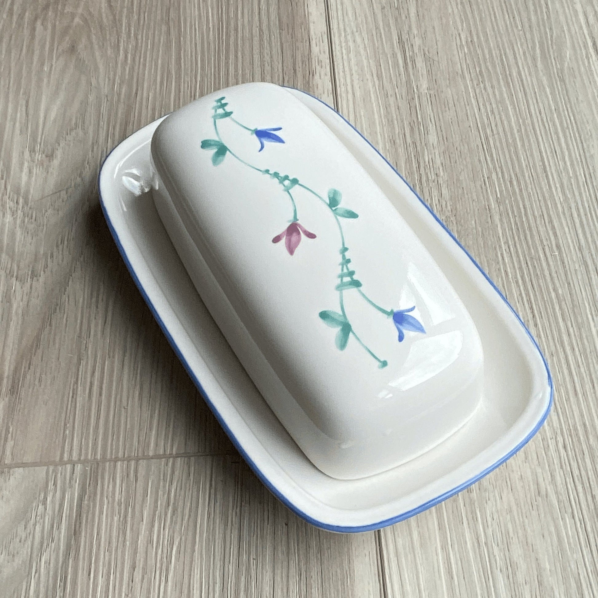 Savoir Vivre Portofino Blue China Covered Butter Dish, Floral, Discontinued