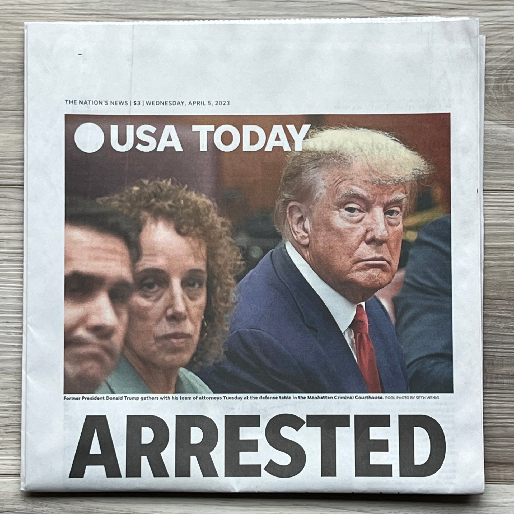 Grab your copy of USA Today's newspaper for April 5, 2023 - headlines, Donald J. Trump ARRESTED. Brand New.