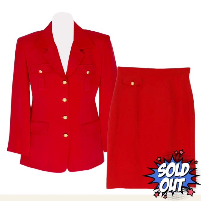 Vintage Allison Taylor Red Silk Business Skirt Suit - S
