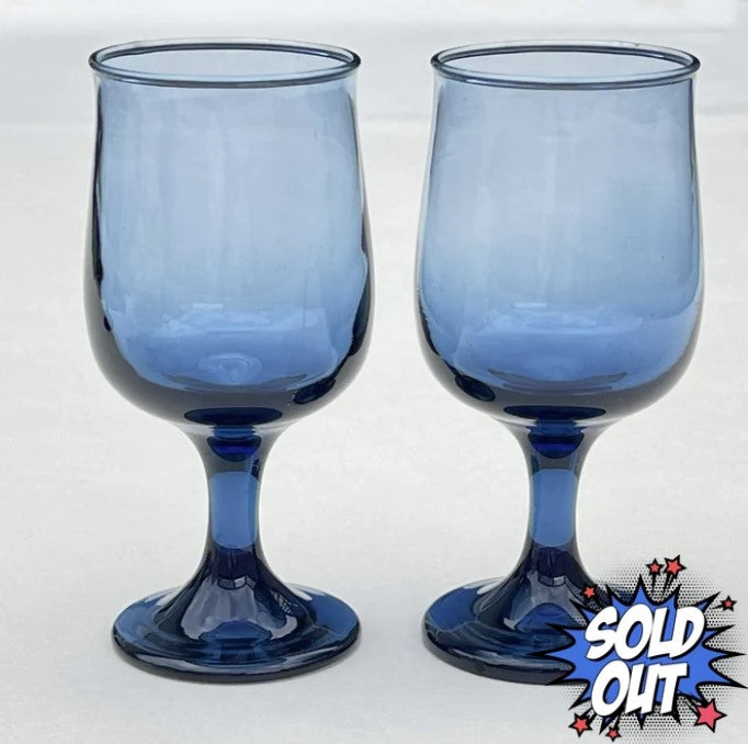Vintage Libbey Dusky Blue Tulip Wine Glasses, Set of 2