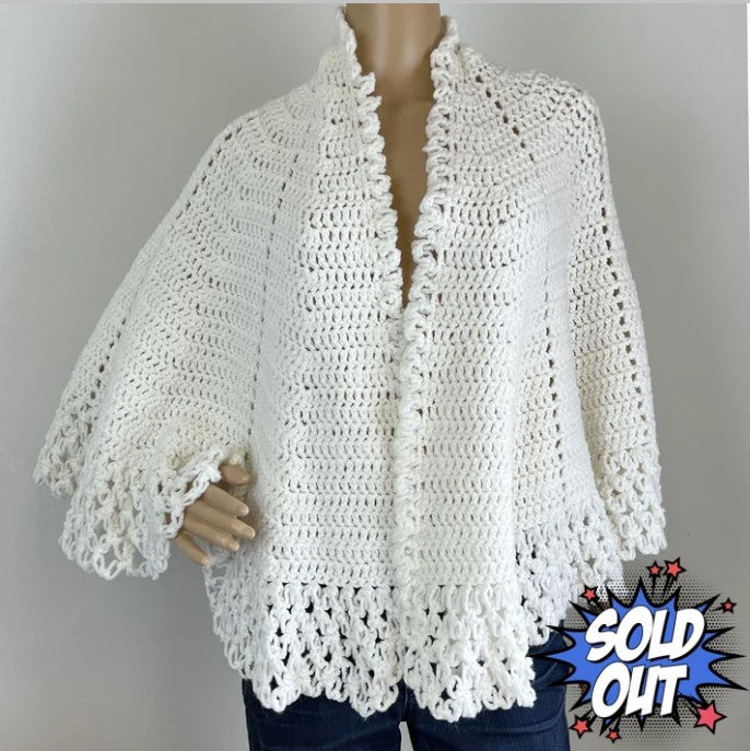 White Crochet Knit Shawl - Handmade by Margaret - Vintage, One Size